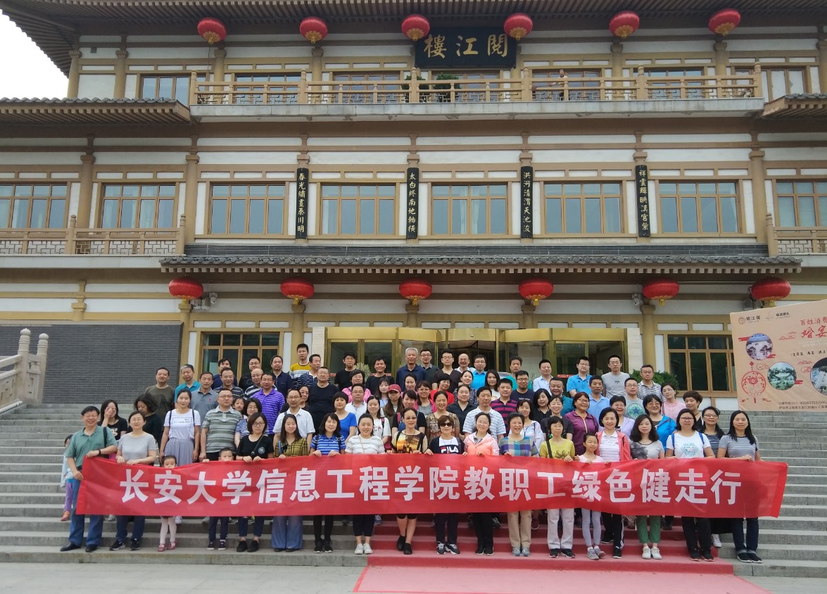 2018年5月19日上午,信息工程学院工会举办的“2233b教职工绿色健走行”活动,在西安曲江遗址公园(南湖公园)顺利举行。活动由学院工会主席关可主持,学院党委书记胡予欣、副院长孙朝云、院党委副书记兼副院长杨玉龙、副书记陈晏和副院长安毅生等和近百名教职工参加了本次活动。