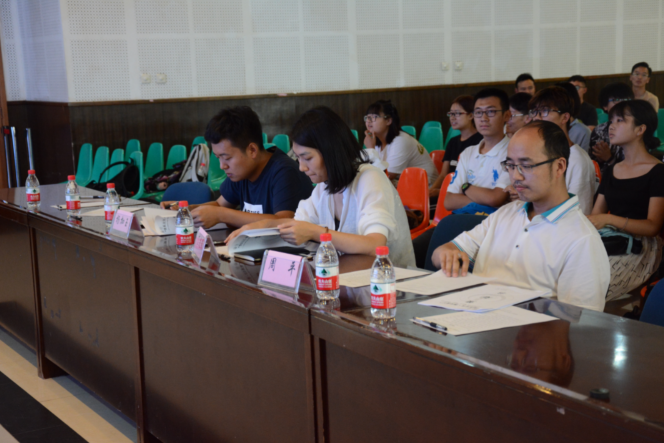 本次答辩由PPT展示和评委老师提问两部分组成,各实践队代表按照抽签顺序依次上场进行答辩。在PPT演示过程中,评委老师通过代表讲解及策划书内容,充分了解各个参与答辩的暑期社会实践队的社会实践内容组成部分,给答辩者指出存在的问题,进行详细的分析后提出相关改进建议。