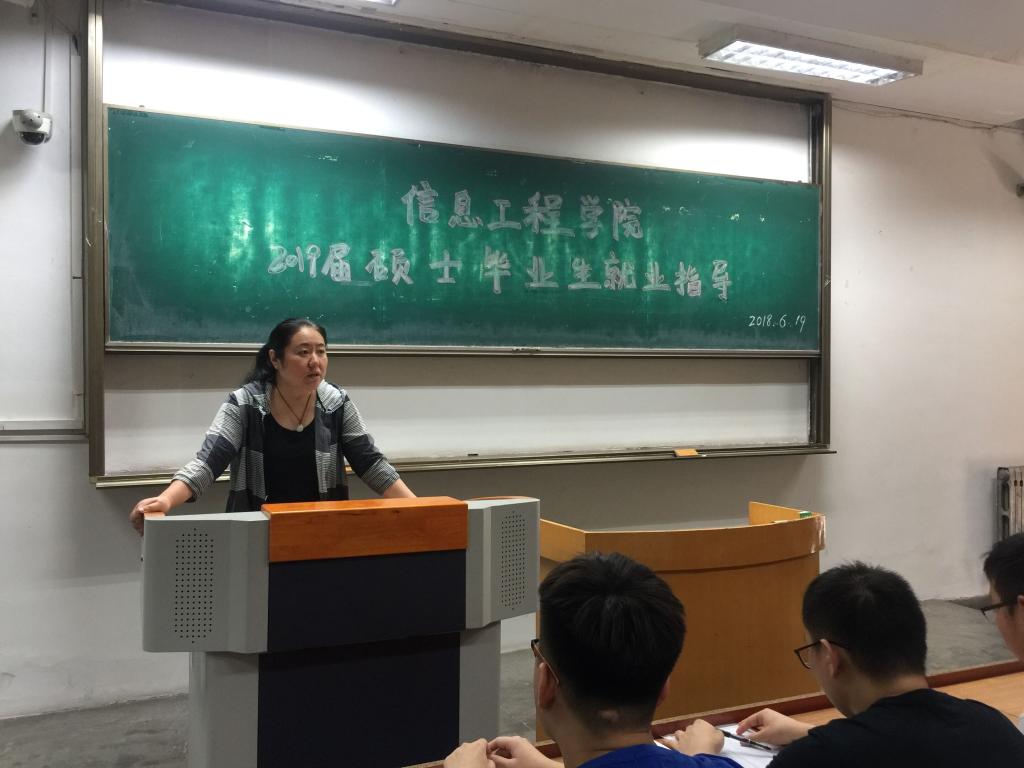 为了进一步推动我院研究生就业工作,帮助2019届研究生毕业生适应就业形势、熟悉就业政策、转变就业观念、增强择业意识,促进2019届研究生毕业生充分就业,6月19日上午,我院在校本部171教室举办了就业指导讲座。学院党委副书记陈晏老师,学办主任黄亚男老师,研究生辅导员刘松鹤老师及信息工程学院全体2019届毕业生参加本次就业指导讲座。