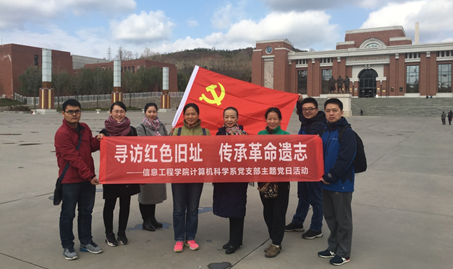 2017年11月12日,计算机与计算机专业实验室党支部组织支部党员及入党积极分子奔赴铜川照金红色革命教育基地学习,参观了陕甘边革命根据地照金纪念馆及薛家寨的陈家坡会议遗址,红军洞、军械所等,接受革命传统再教育。