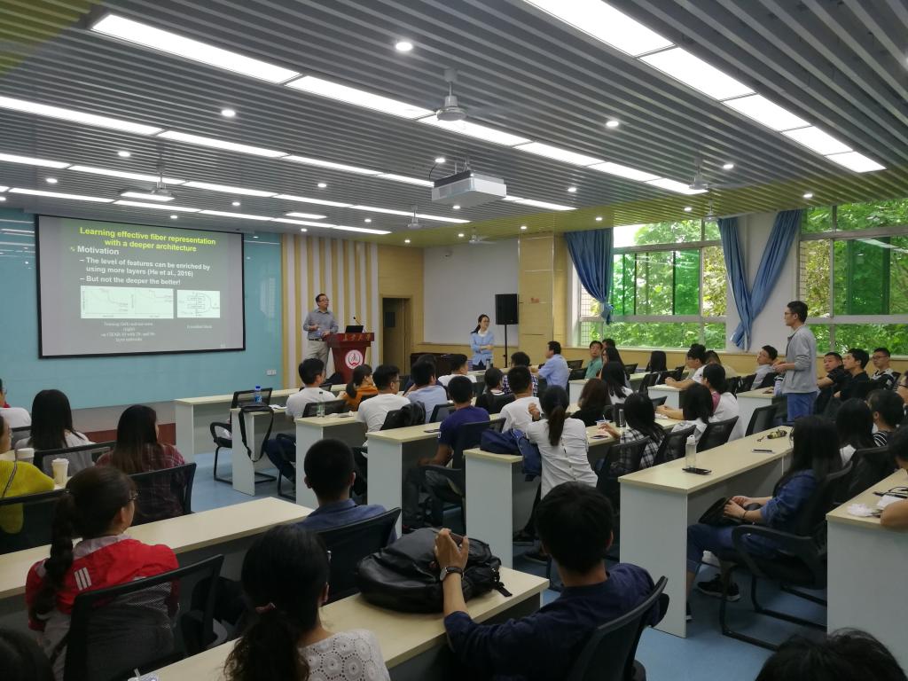 2018年5月21日上午,由研究生院/研究生工作部主办、信息工程学院承办、研究生科学技术协会协办的“虹”学讲堂第108讲在校本部东院雁博园四楼成功举办。美国韦恩州立大学Ming Dong教授围绕主题“Deep Learning: New Frontiers and Applications on Healthcare and Automotive Industries”作了学术报告。本次讲座由信息工程学院徐琨副教授主持,信息工程学院杨小军教授、焦立男副教授等及150余名研究生参加了此次讲座。