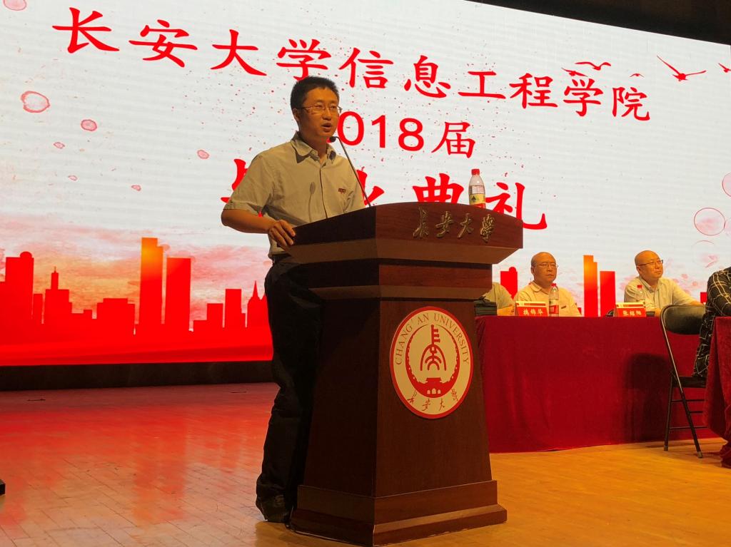 学院教师代表,物联网与网络工程系副主任任帅发言。任老师用风趣幽默的语言总结了这几年同学们的学习情况,同时为毕业生们在今后工作和学习生活当中提出了期待。